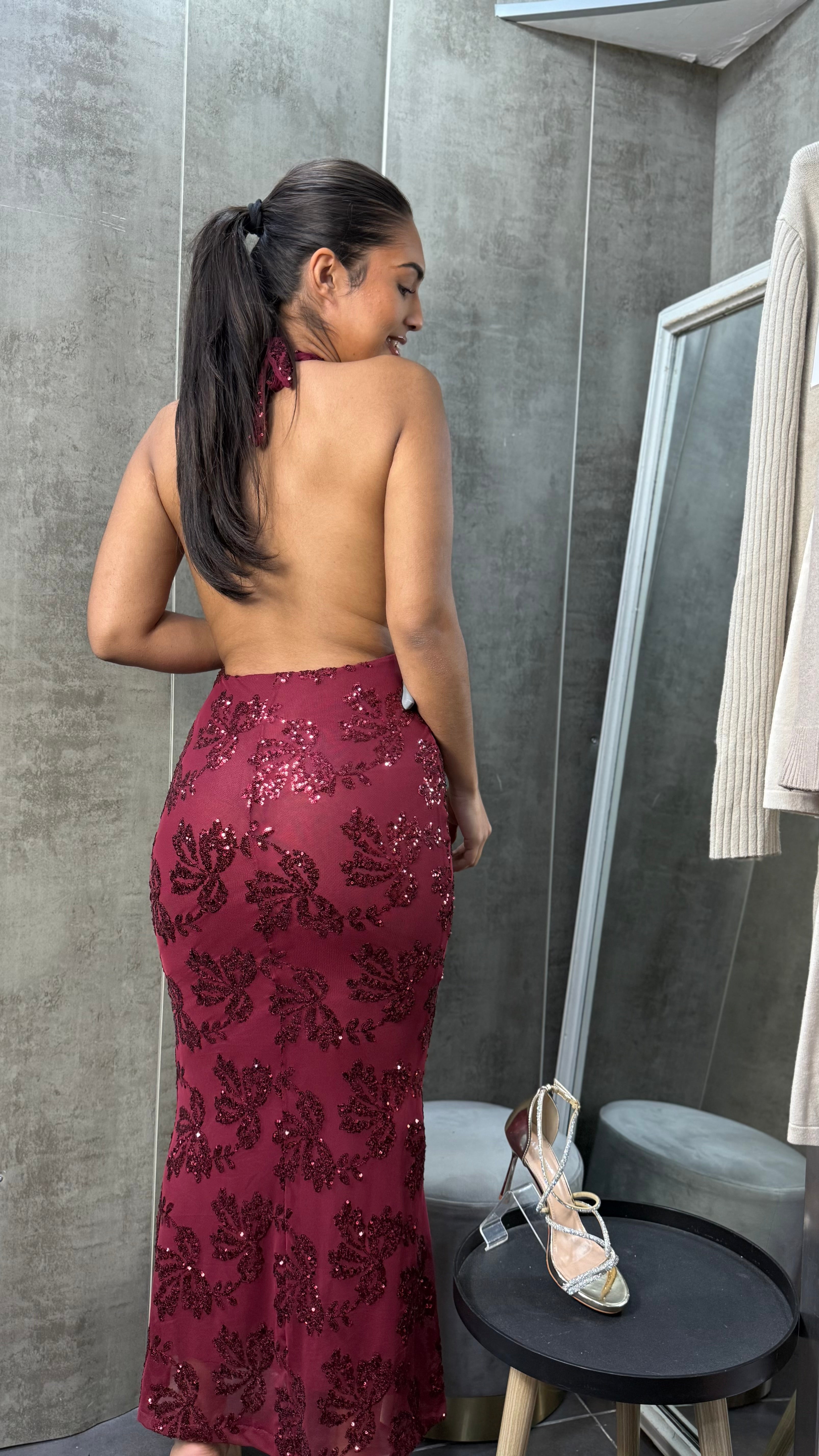 VESTIDO TERCIOPELO TACHUELAS VINO