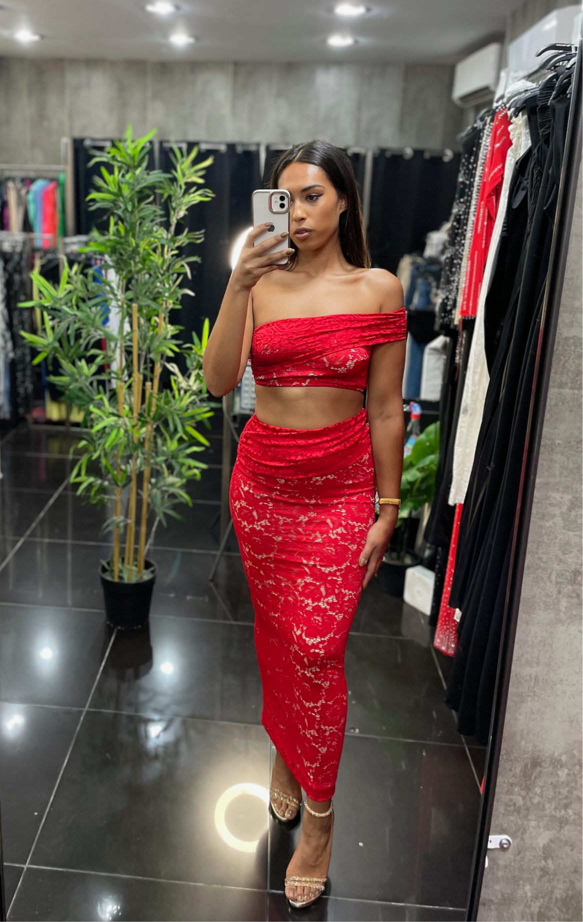 CONJUNTO ANASTASIA ENCAJE ROJO