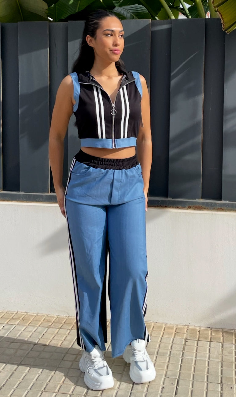 Conjunto chándal con cinturón en el top.