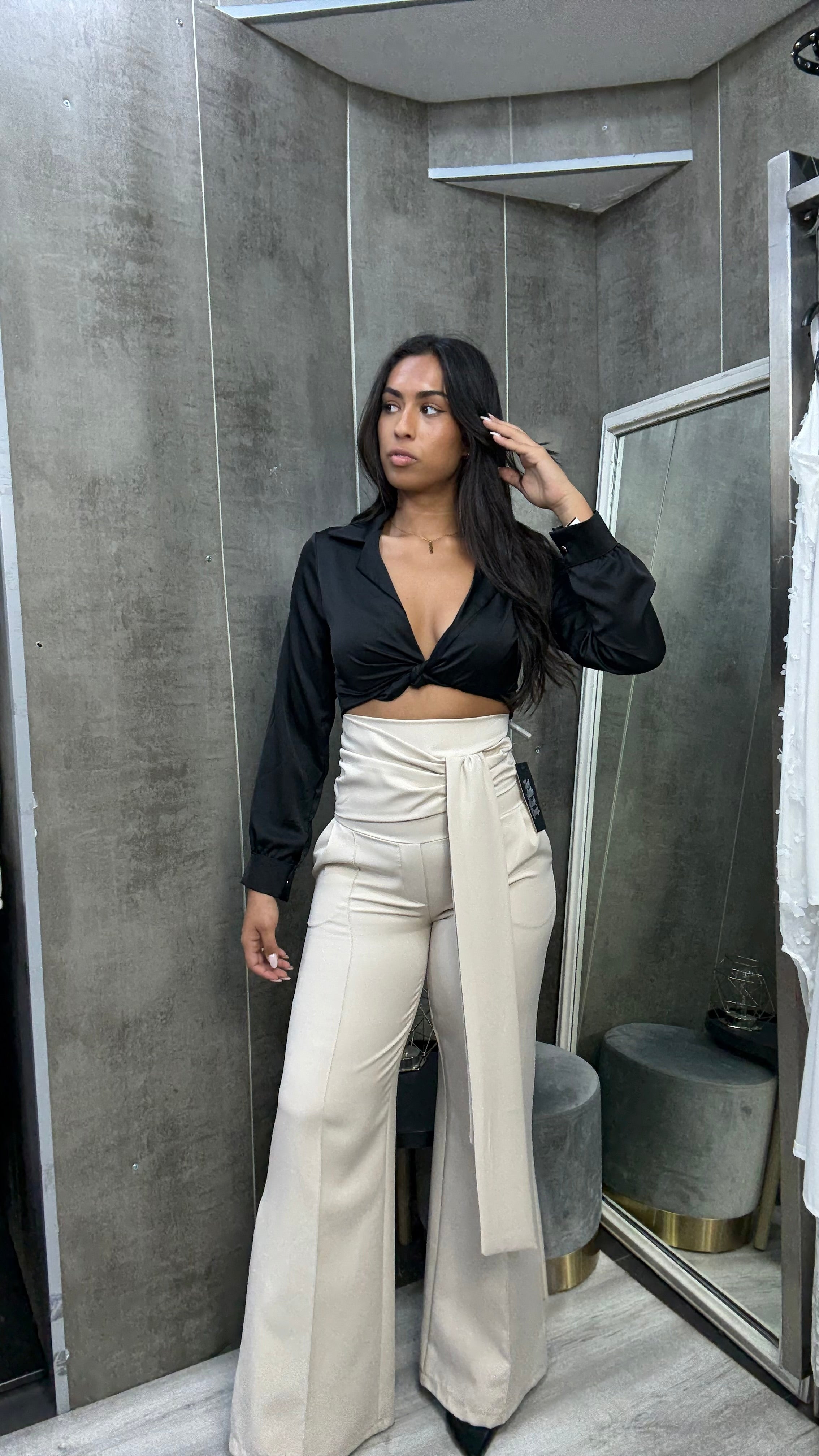 Pantalón Con Fajín Crema