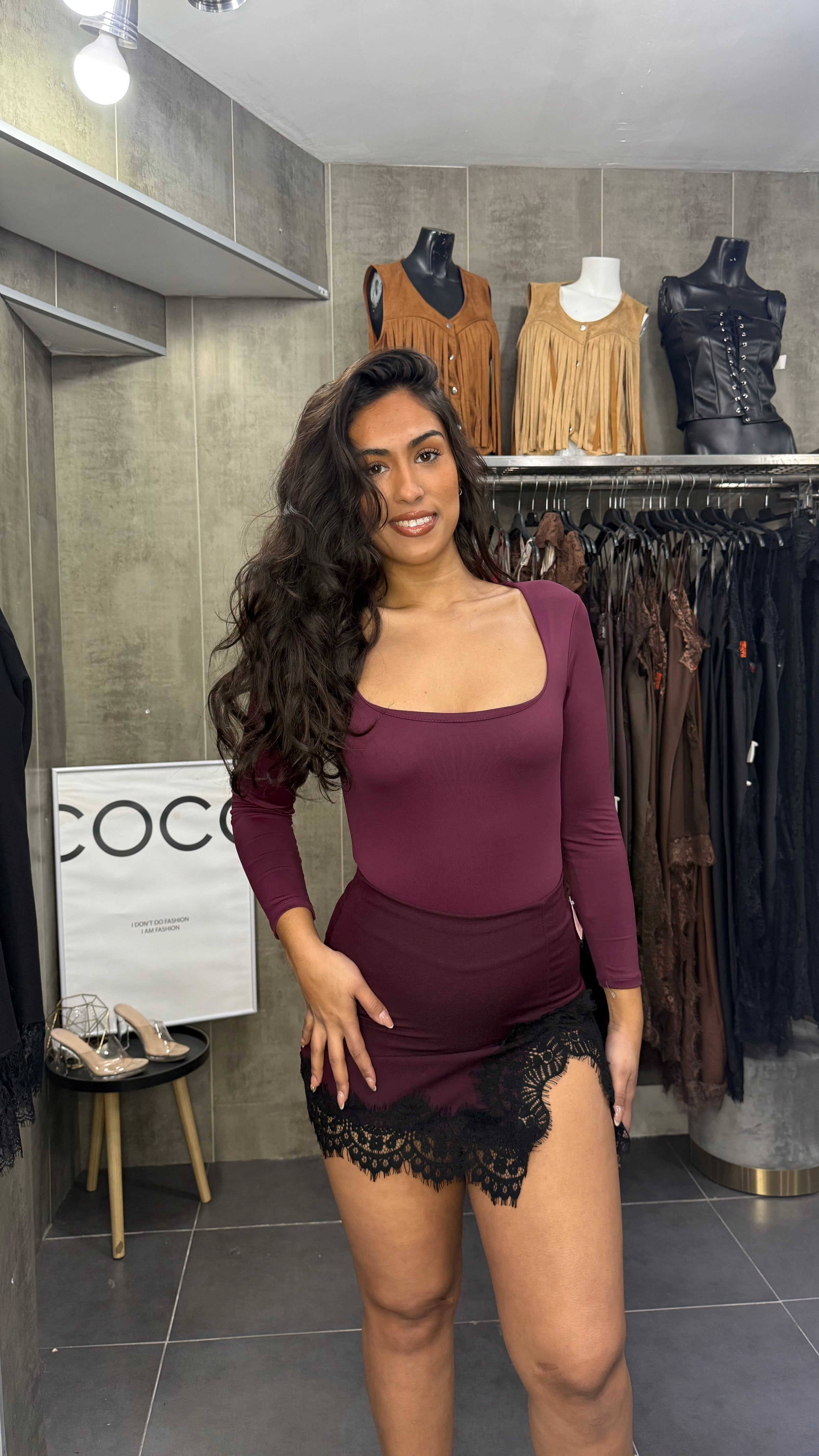 Falda Punto Granate y filo encaje