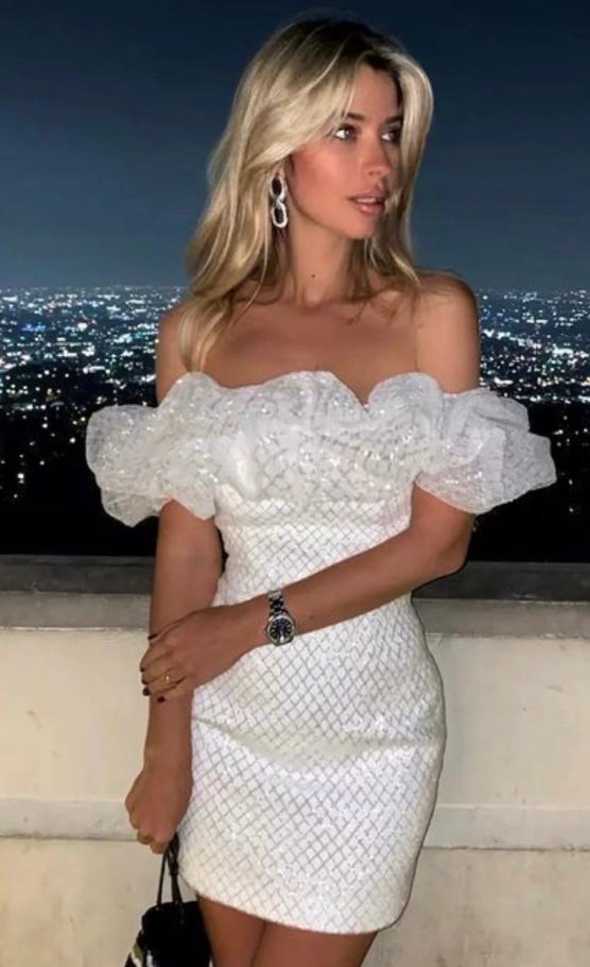 VESTIDO VOLANTE LENTEJUELAS BLANCO