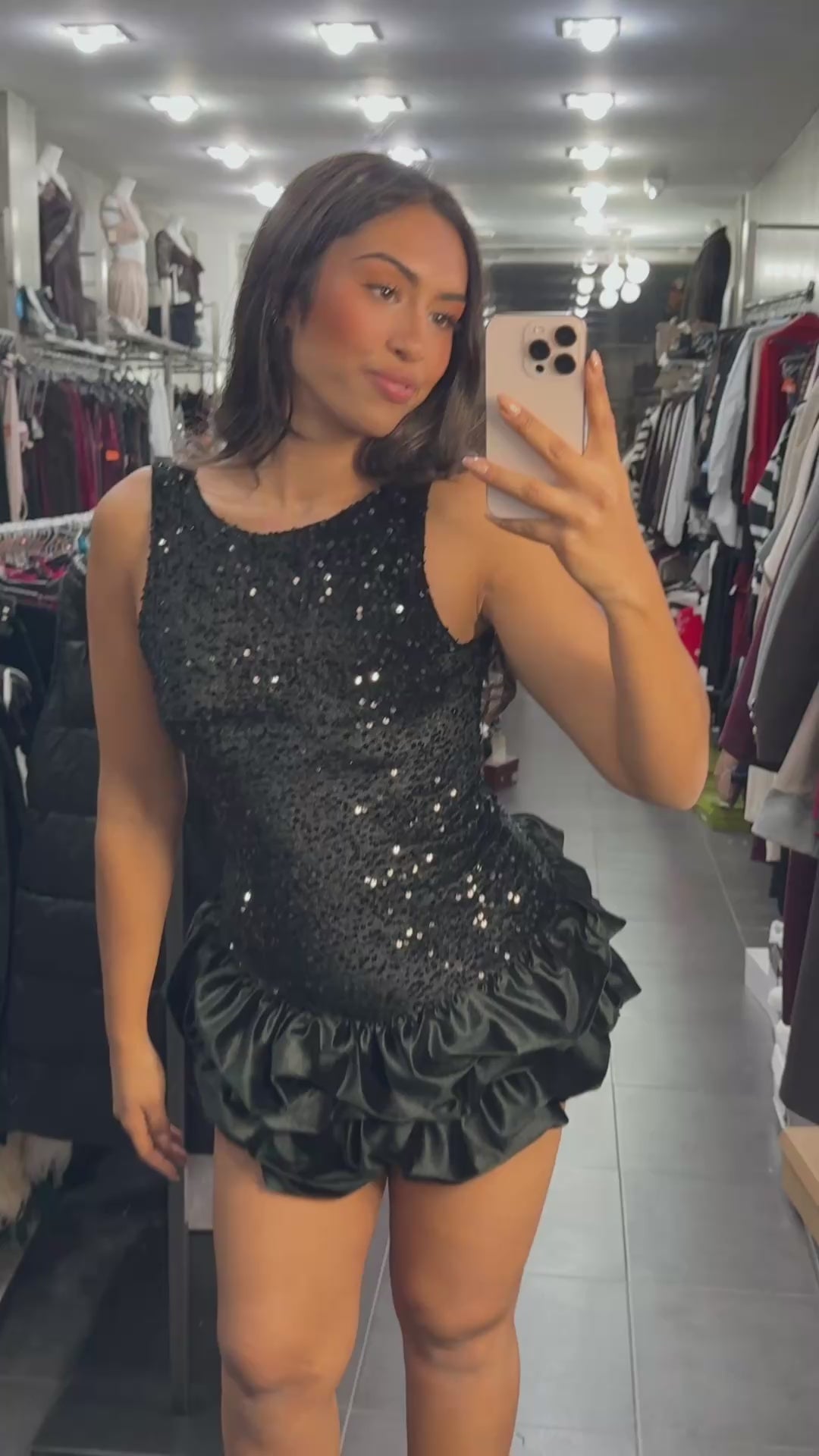 VESTIDO LENTEJUELAS VOLANTE NEGRO