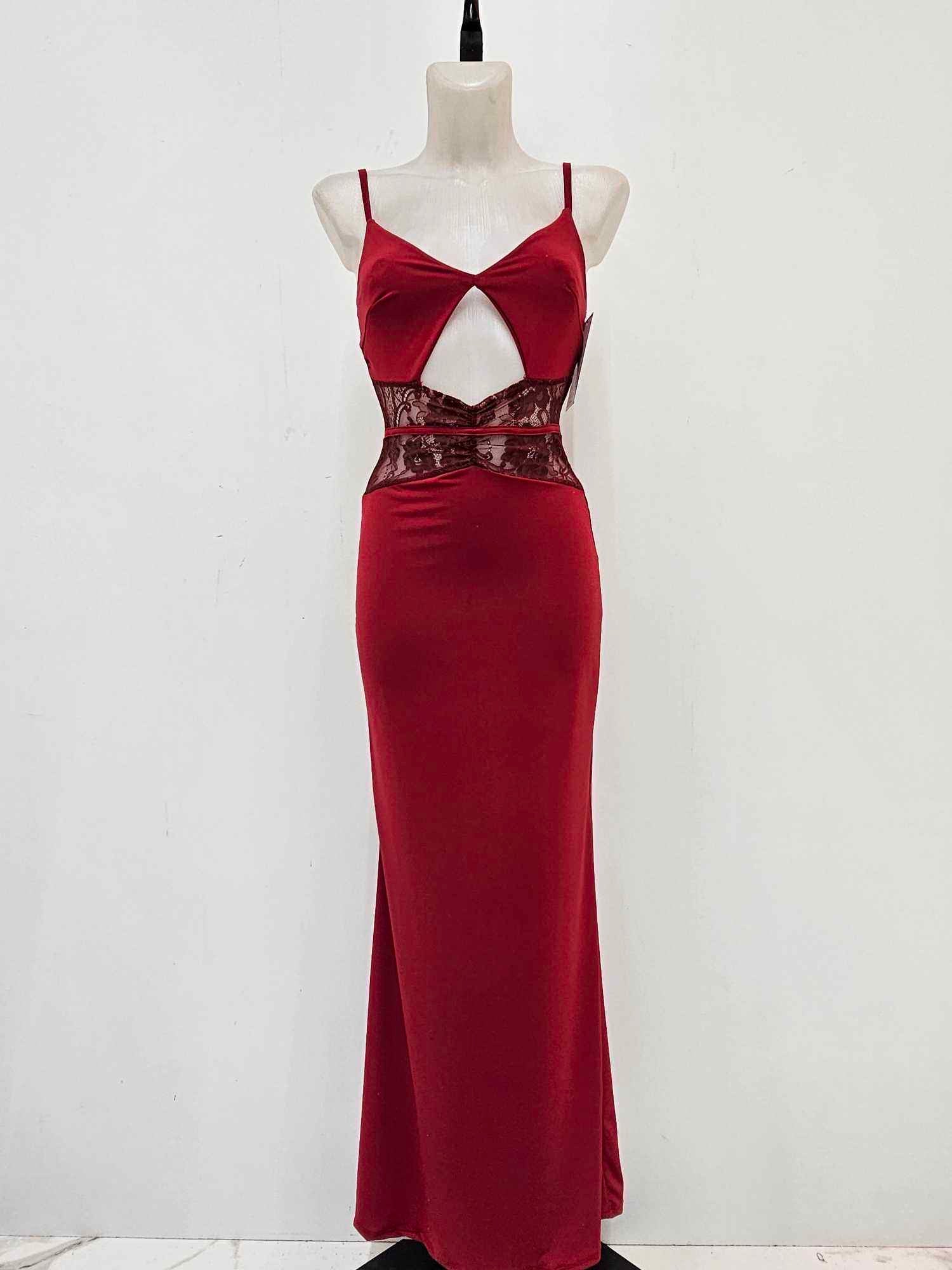 VESTIDO LICRA ENCAJE VALENCIA ROJO