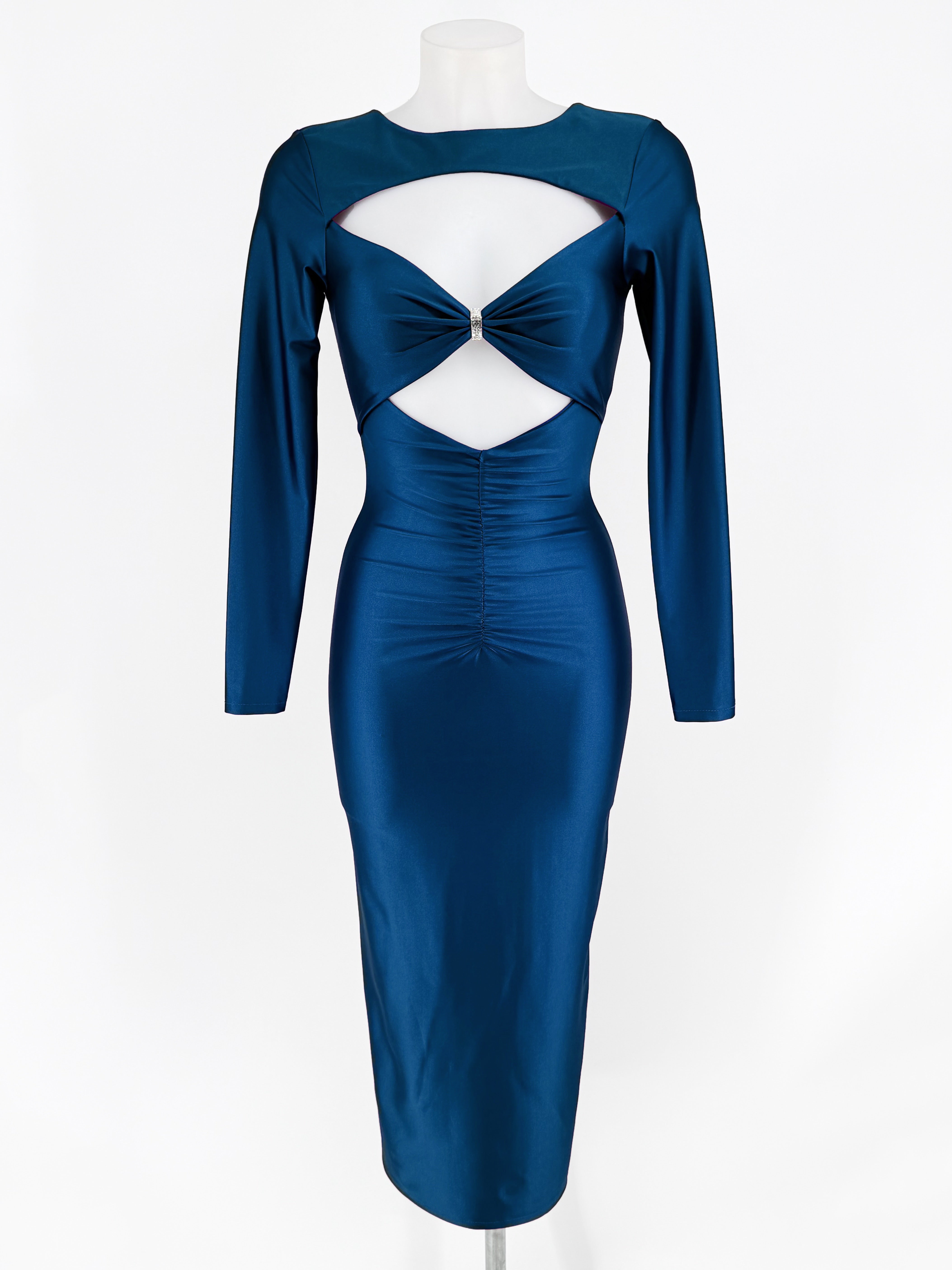vestido manga larga, licrado con detalle de brillo en pecho.