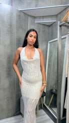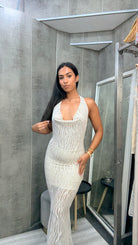 Vestido Cebra Halter Beige