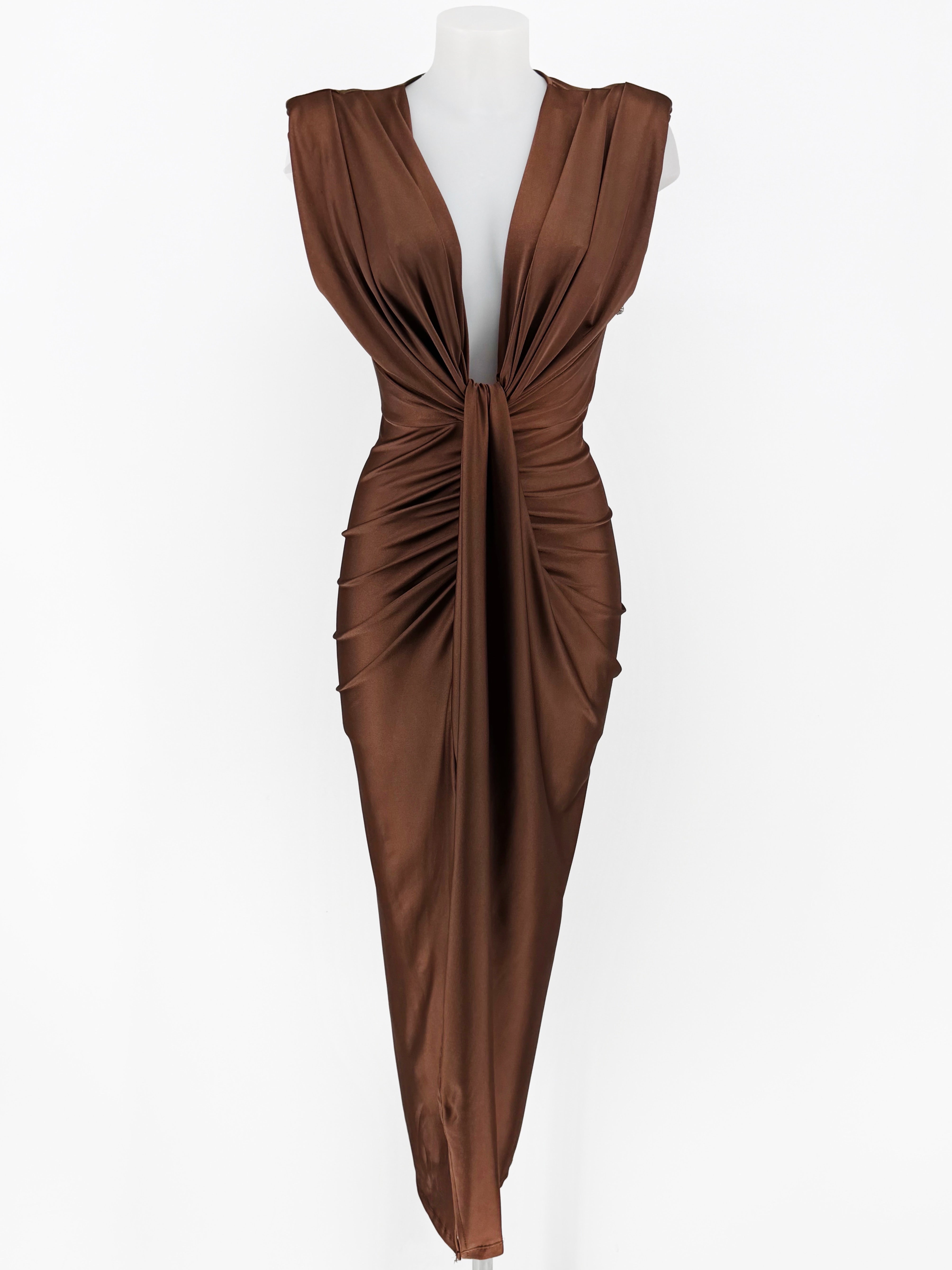 VESTIDO NUDO ESCOTE CHOCOLATE