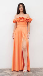 Vestido volante de raso largo.