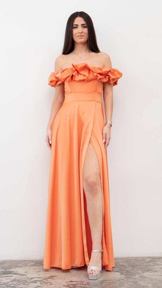 VESTIDO VOLANTE RASO NARANJA