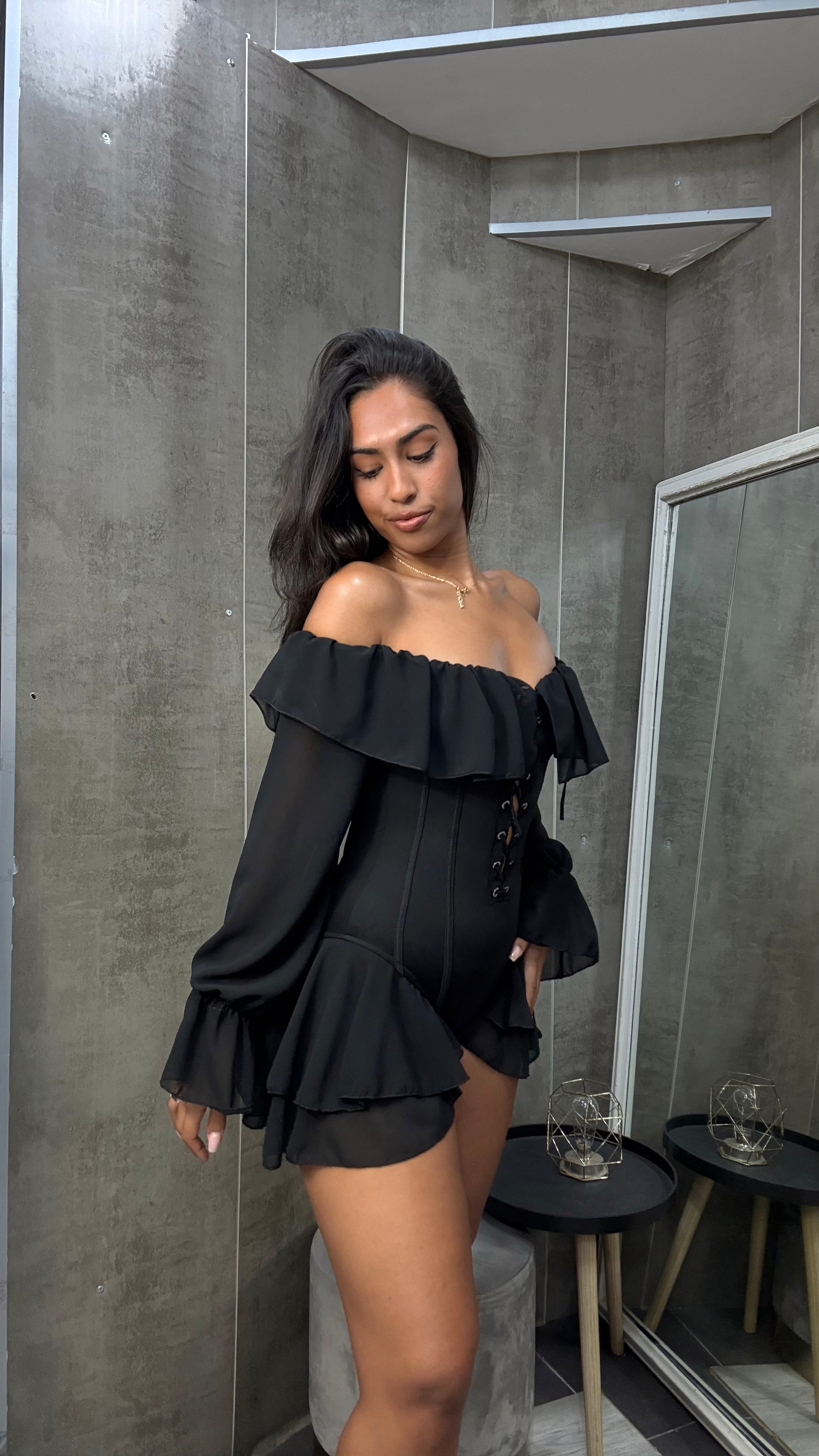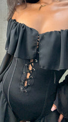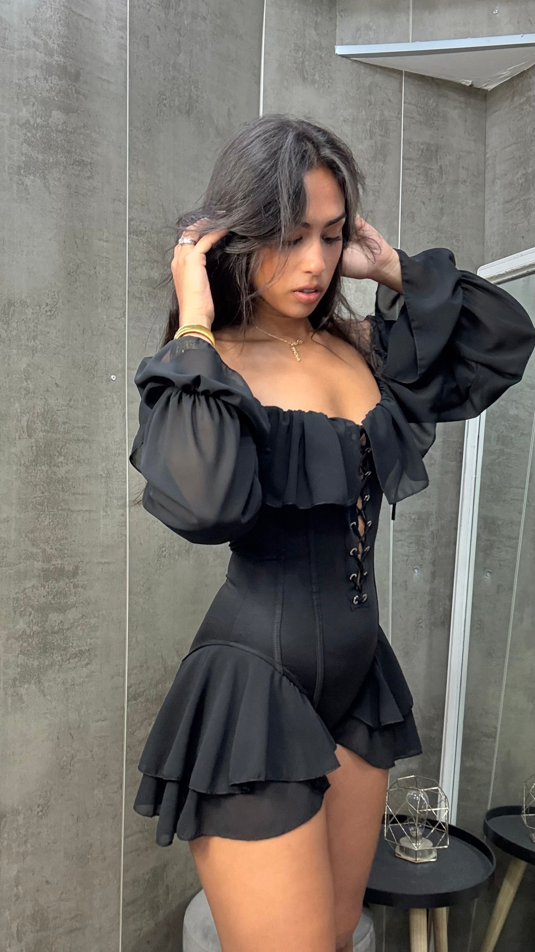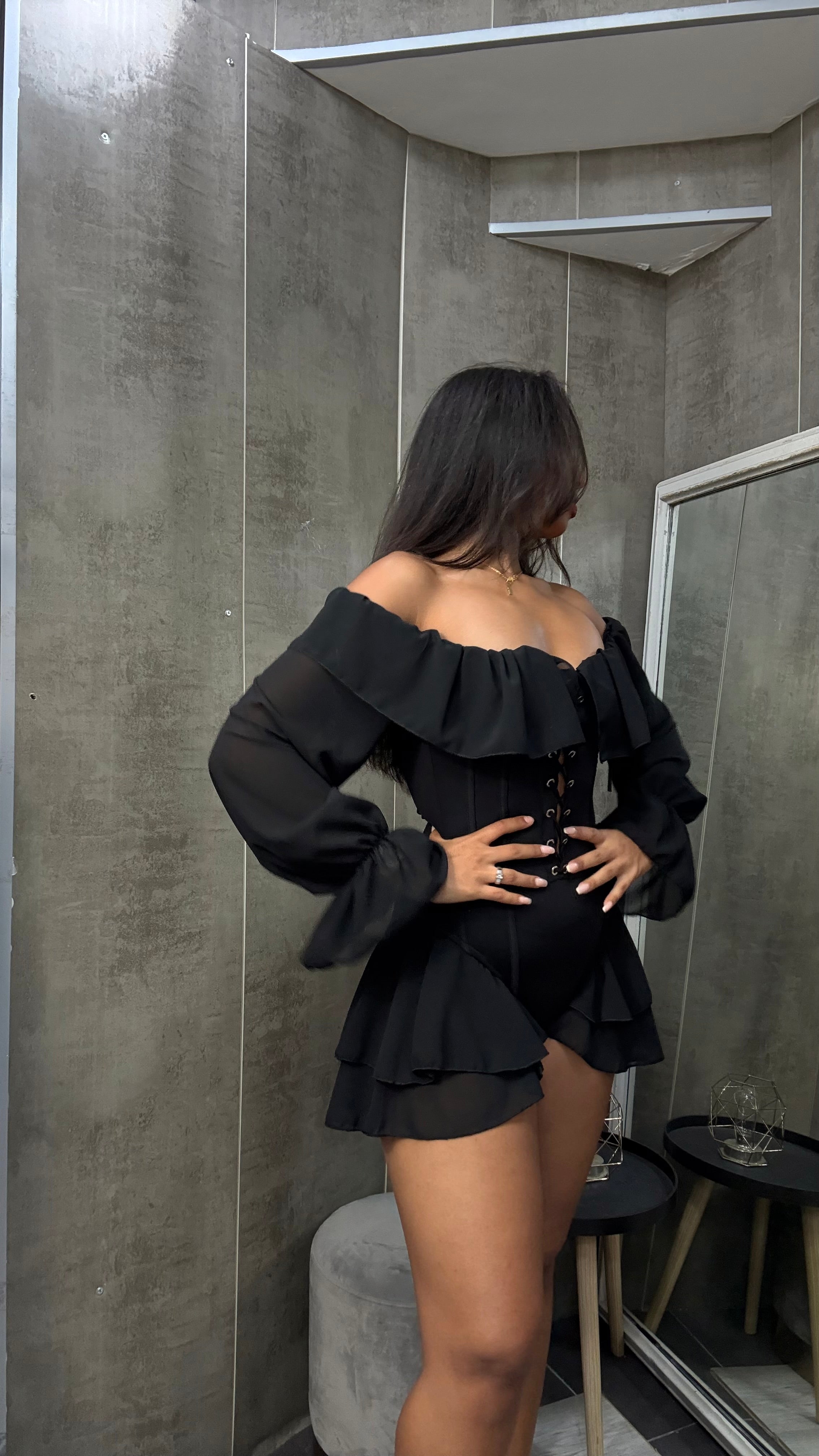 Body de una pieza con efecto corsé y mangas abullonadas con escote ajustable.